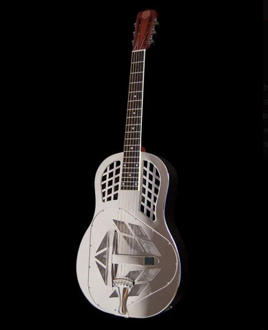 National's Style 1 Tricone shares many of its' features with the original National Tricone created by the Dopyera brothers in the late 1920's. The brass body is polished to a mirror-like shine and nickel plated. The mahogany neck, finished in a rich mahogany burst, has an ivoroid bound ebony fingerboard. The vintage-style tuning machines sit on a traditional slotted headstock, complete with the distinctive National shield decal.